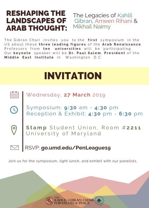 The Gibran Chair is holding a Symposium on Wedesday the 27th of March titled: Reshaping the Landscapes of Arab Thought: The Legacies of Kahlil Gibran, Ameen Rihani, and Mikhail Naimy. If you wish to attend please RSVP Here: ...